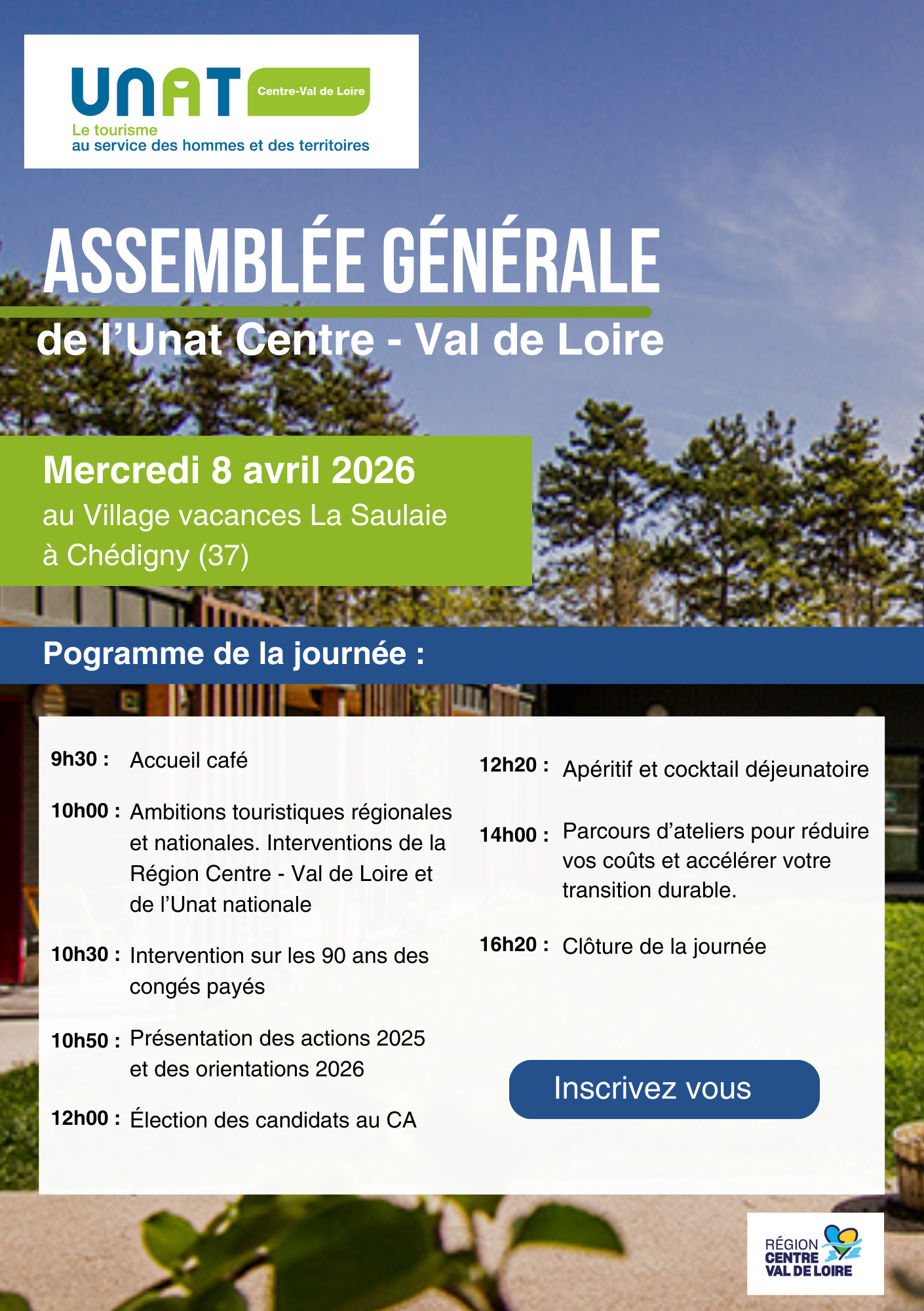 Rejoignez-nous le mercredi 8 avril 2026 au village vacances La Saulaie (37) pour une journée riche en échanges et en convivialité avec les acteurs régionaux du tourisme et de l'économie sociale et solidaire.